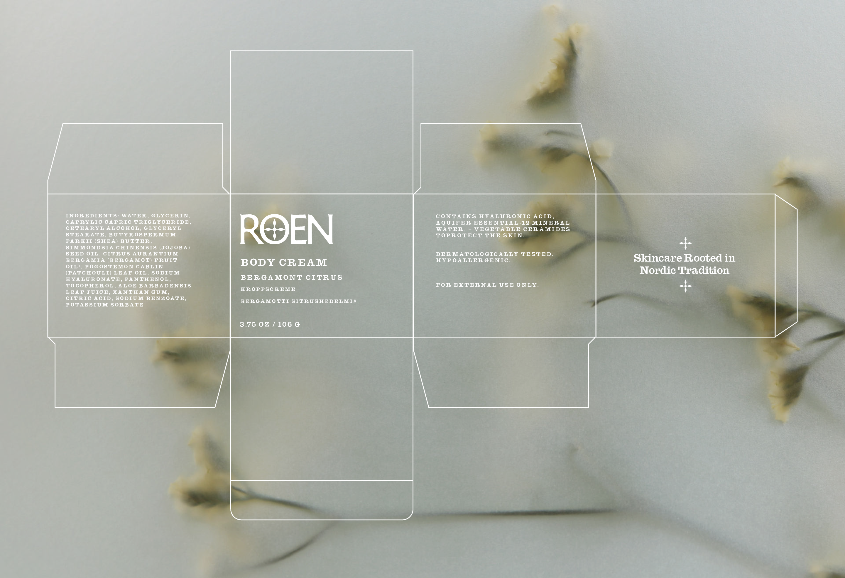 ROEN is a self-initiated branding project exploring a Nordic skincare brand shaped by the culture and environment of the North. The visual identity is informed by Scandinavian restraint, natural materials, and the stark beauty of Nordic landscapes. A muted palette and minimal typography echo the region’s balance of simplicity and function. Together, these elements create a refined, quietly confident brand rooted in nature and clarity.